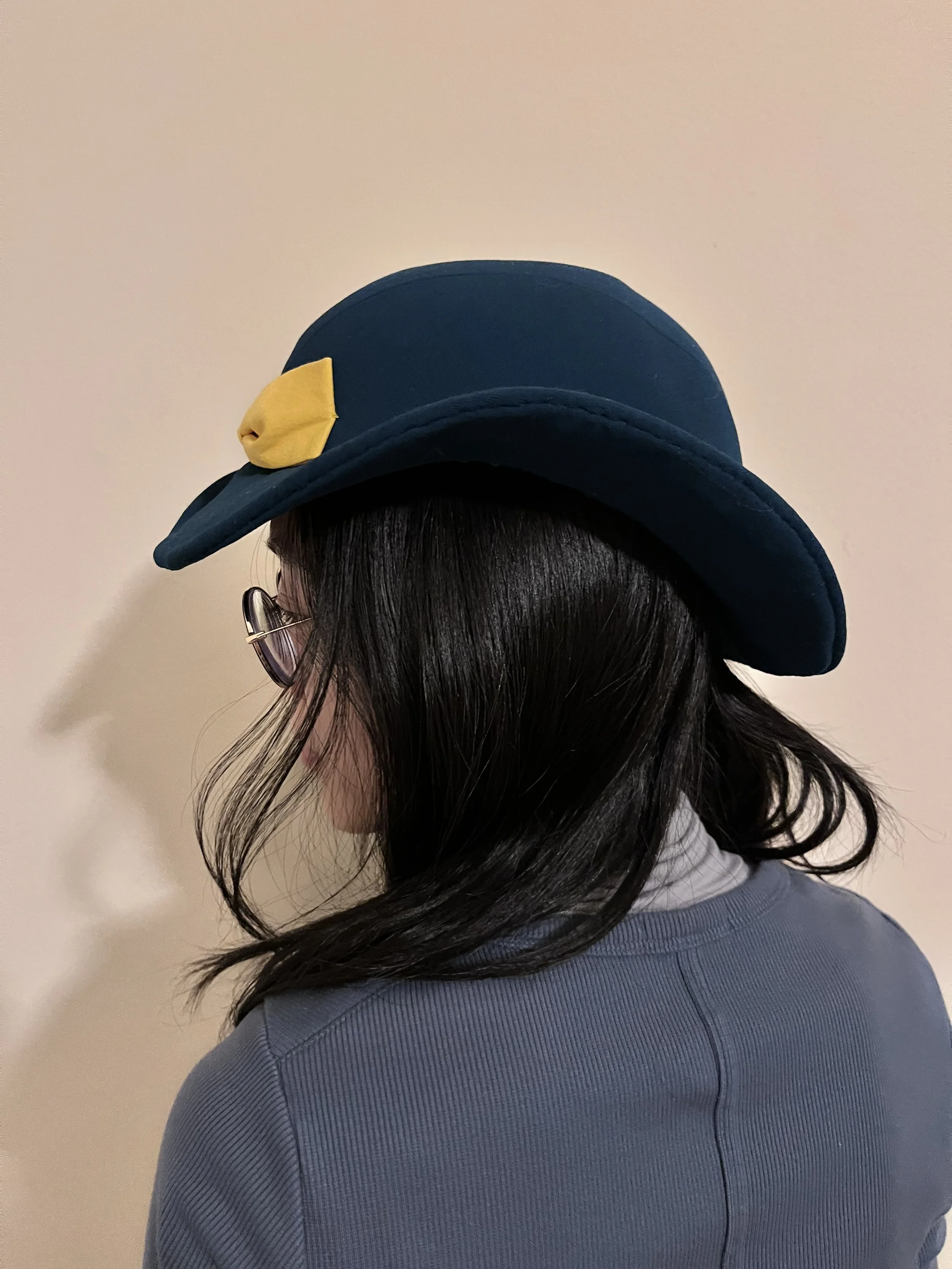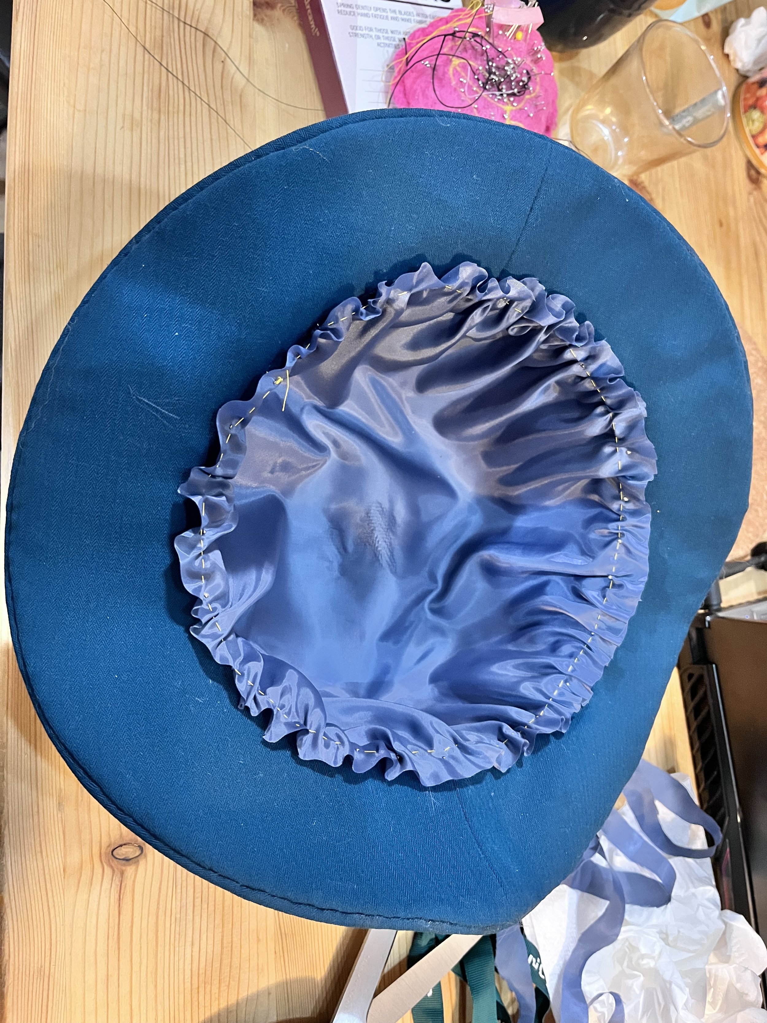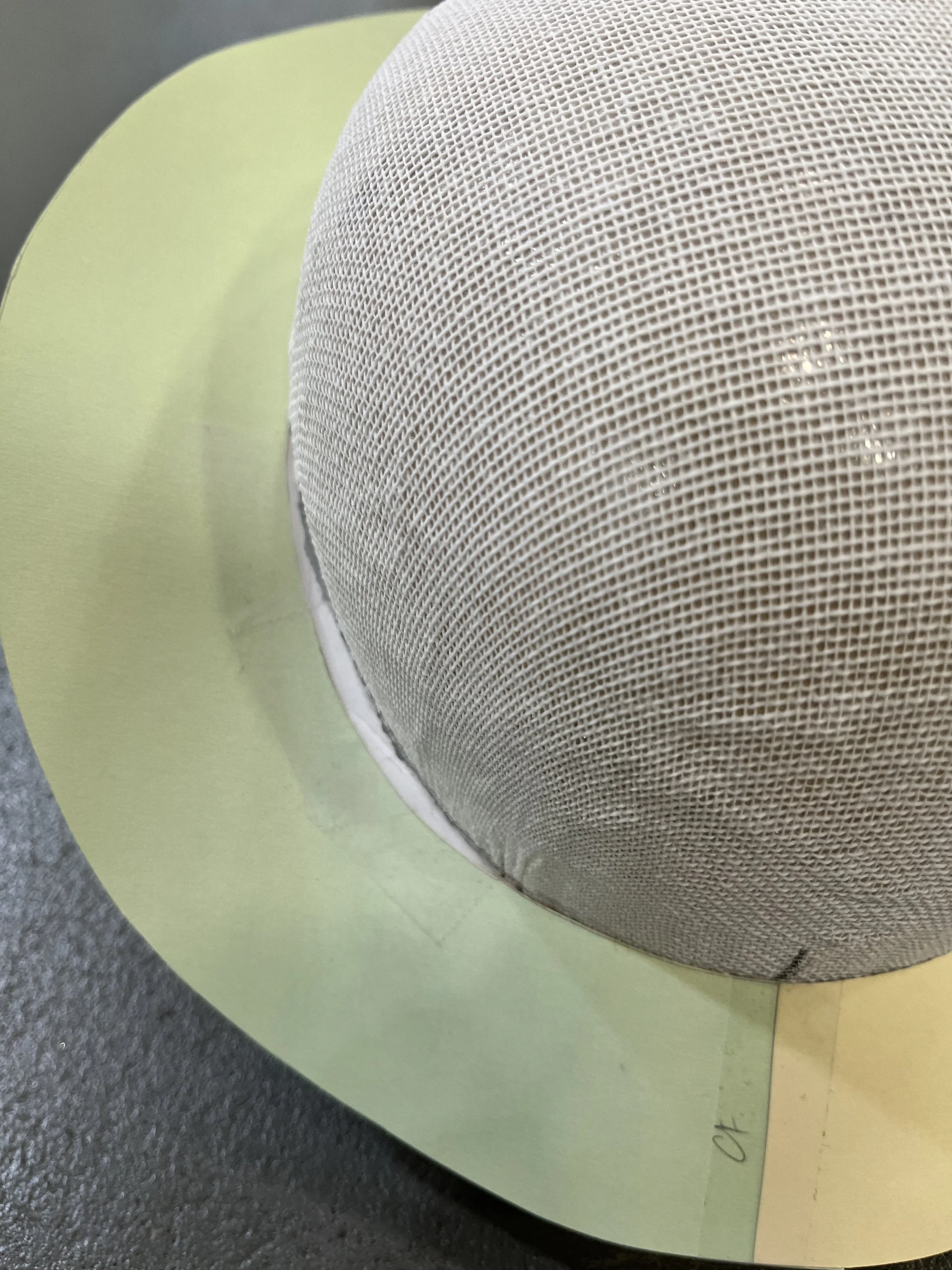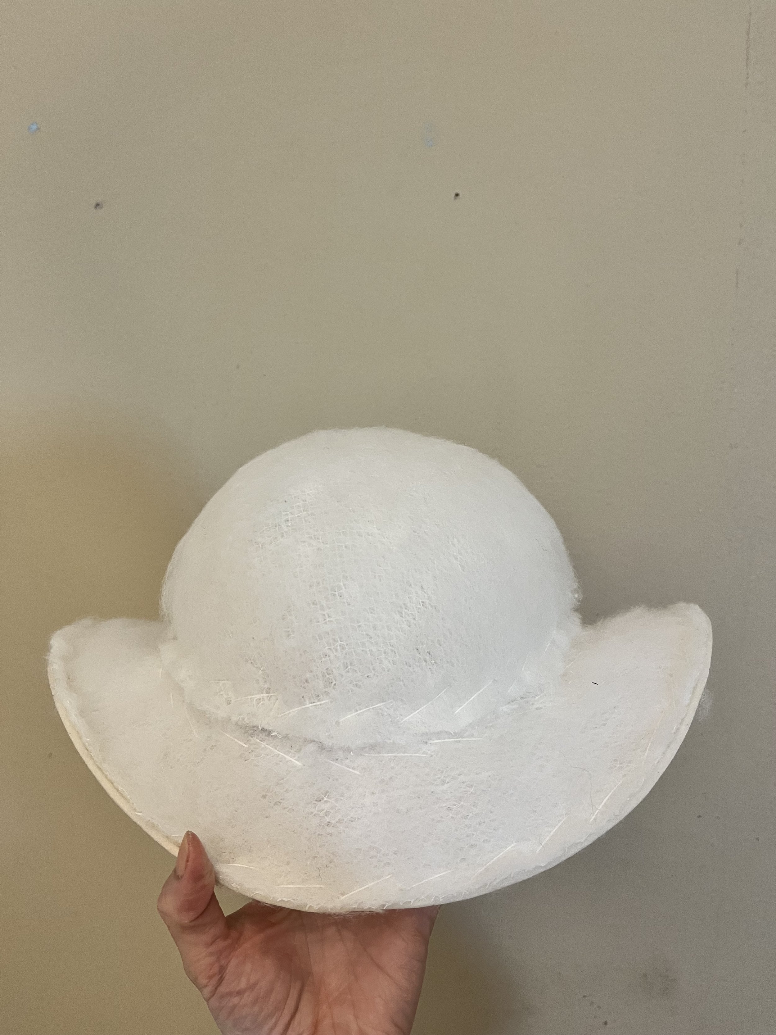 Materials/ Buckram, Silamide, Millinery Wire, Ice wool, Lining, Grosgrain, Ribbon, Yellow Cotton Fabric, Tile Light-Weight Crepe.